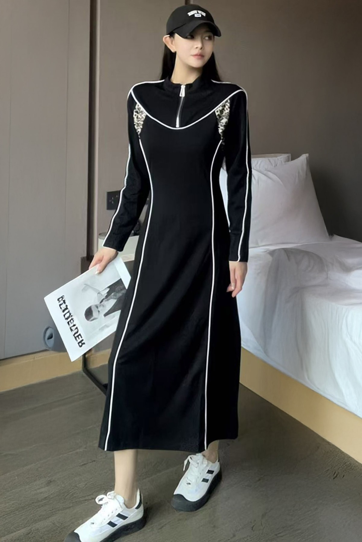 Animal Print Designed Black Dress