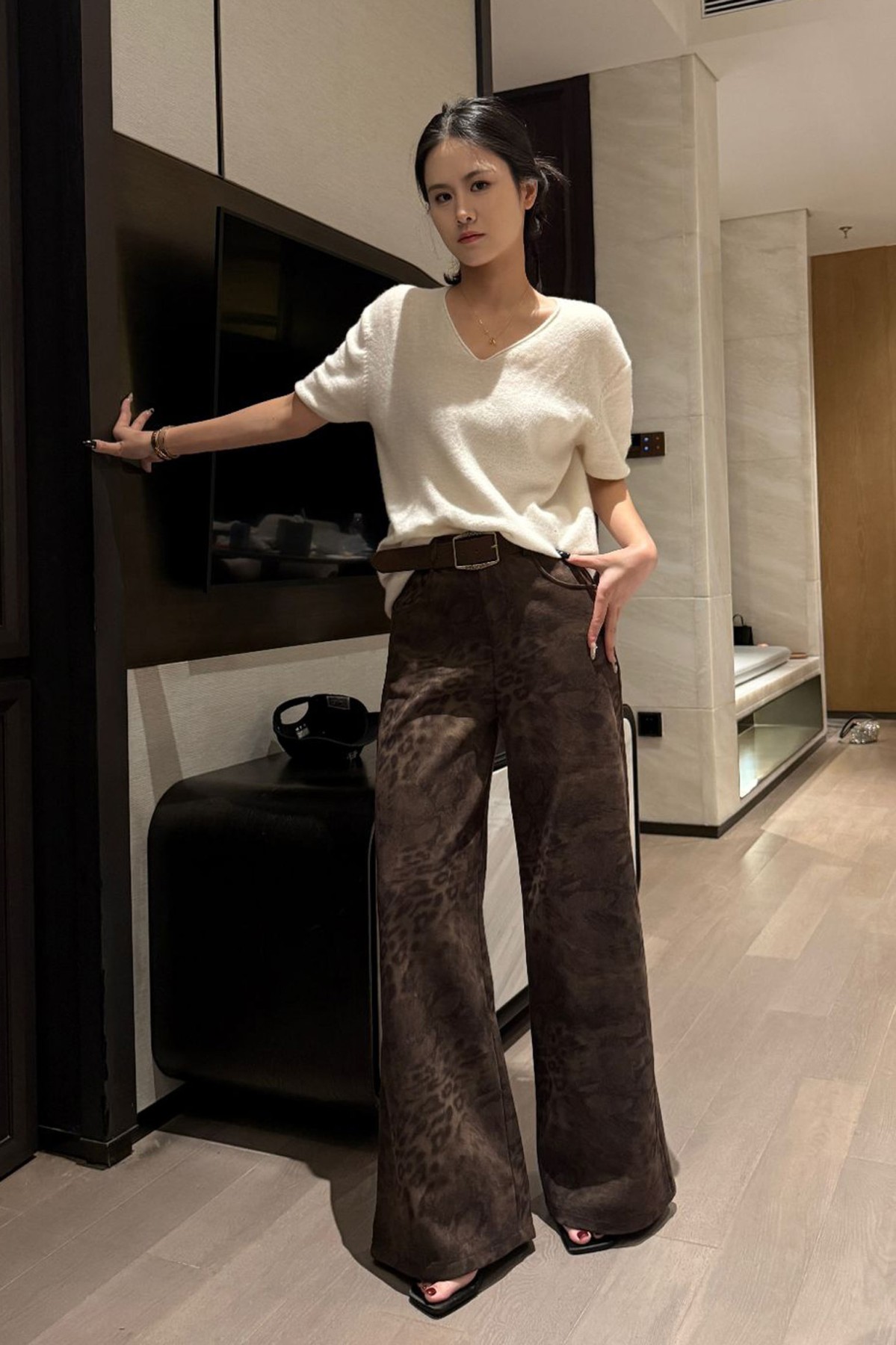 Animal Print Belted Brown Pants