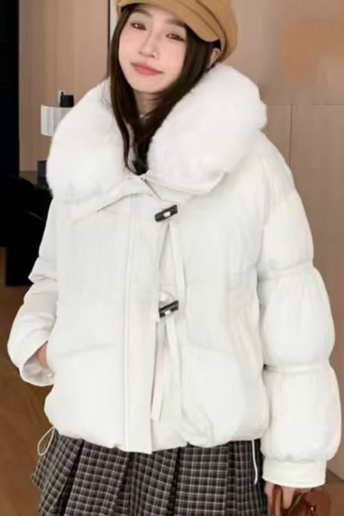 White Fur Puffed White Jacket