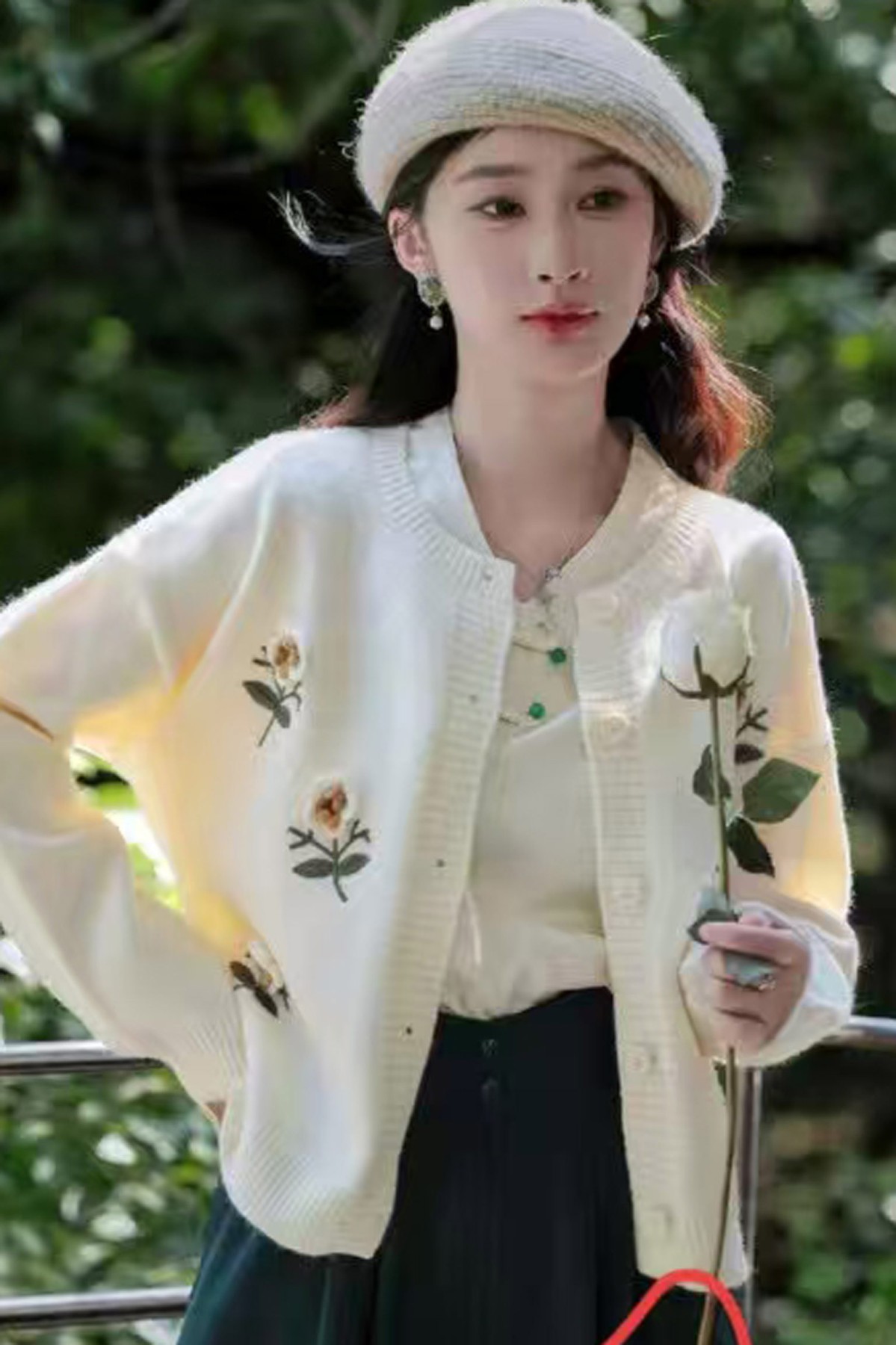 Flowers Detailed White Cardigan
