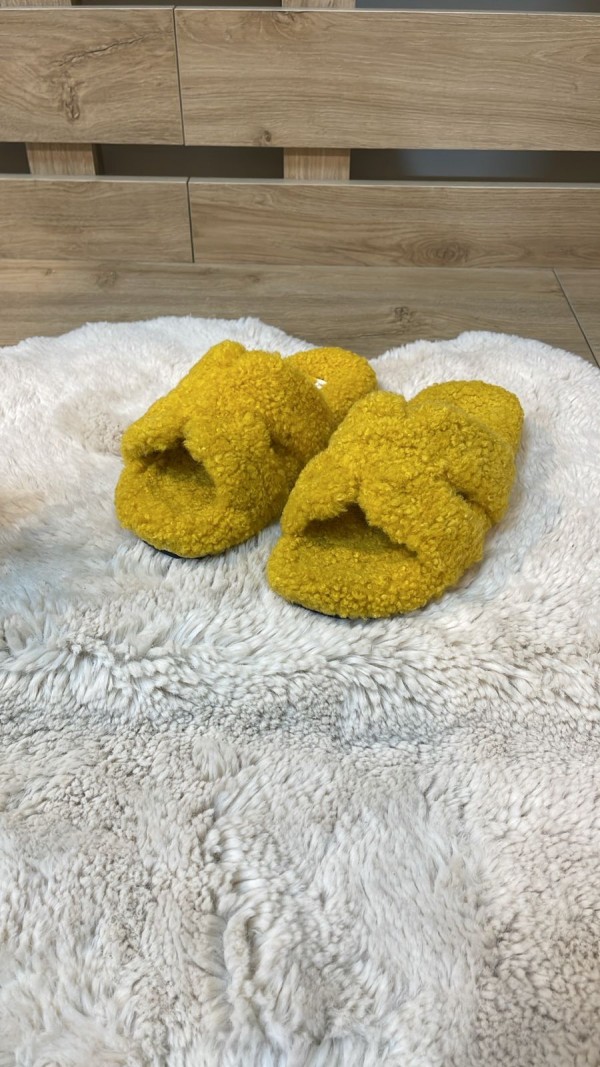 Curly Fur Mustard Slippers