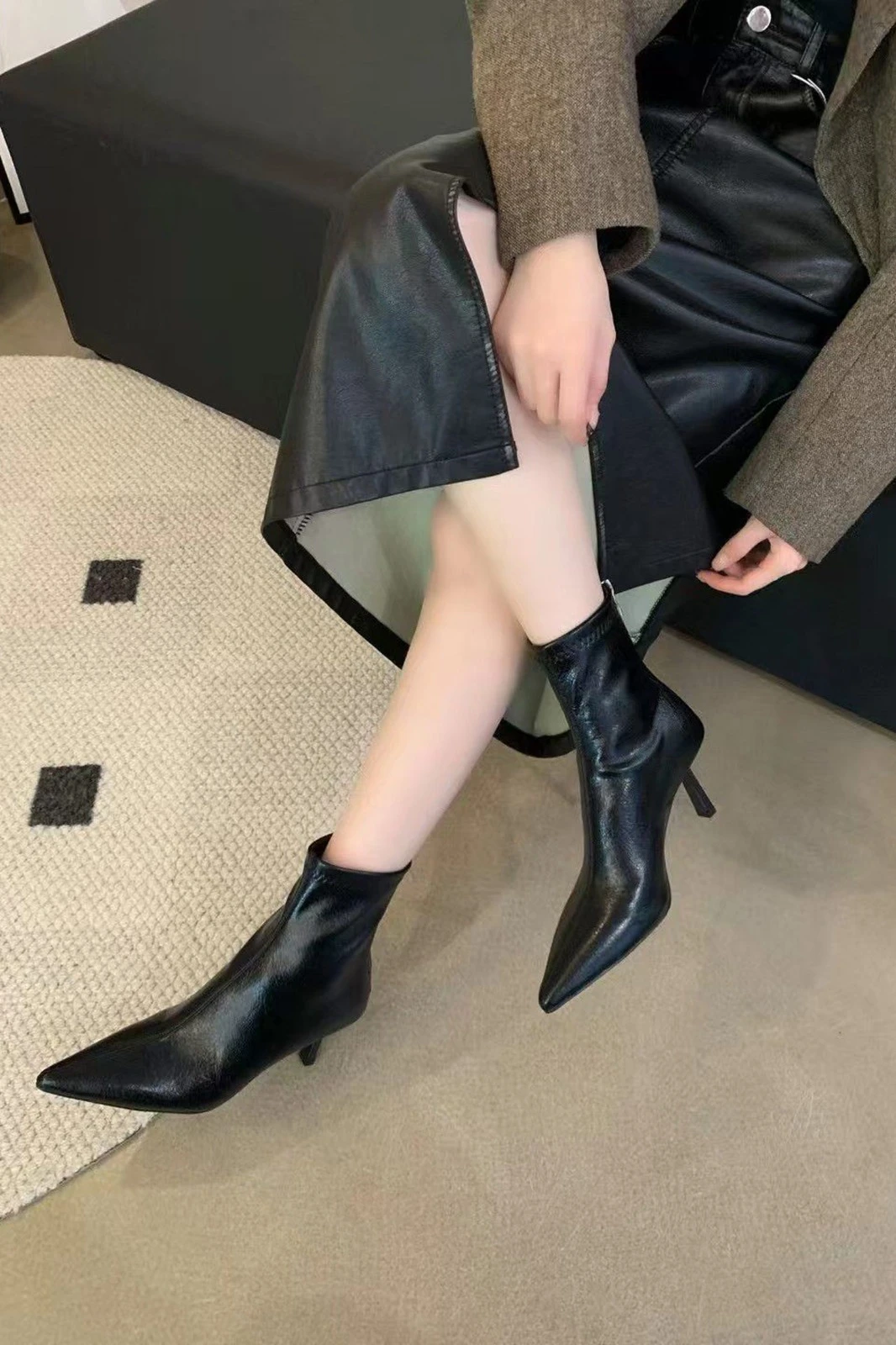 High Heels Pointed Ankle Black Boots