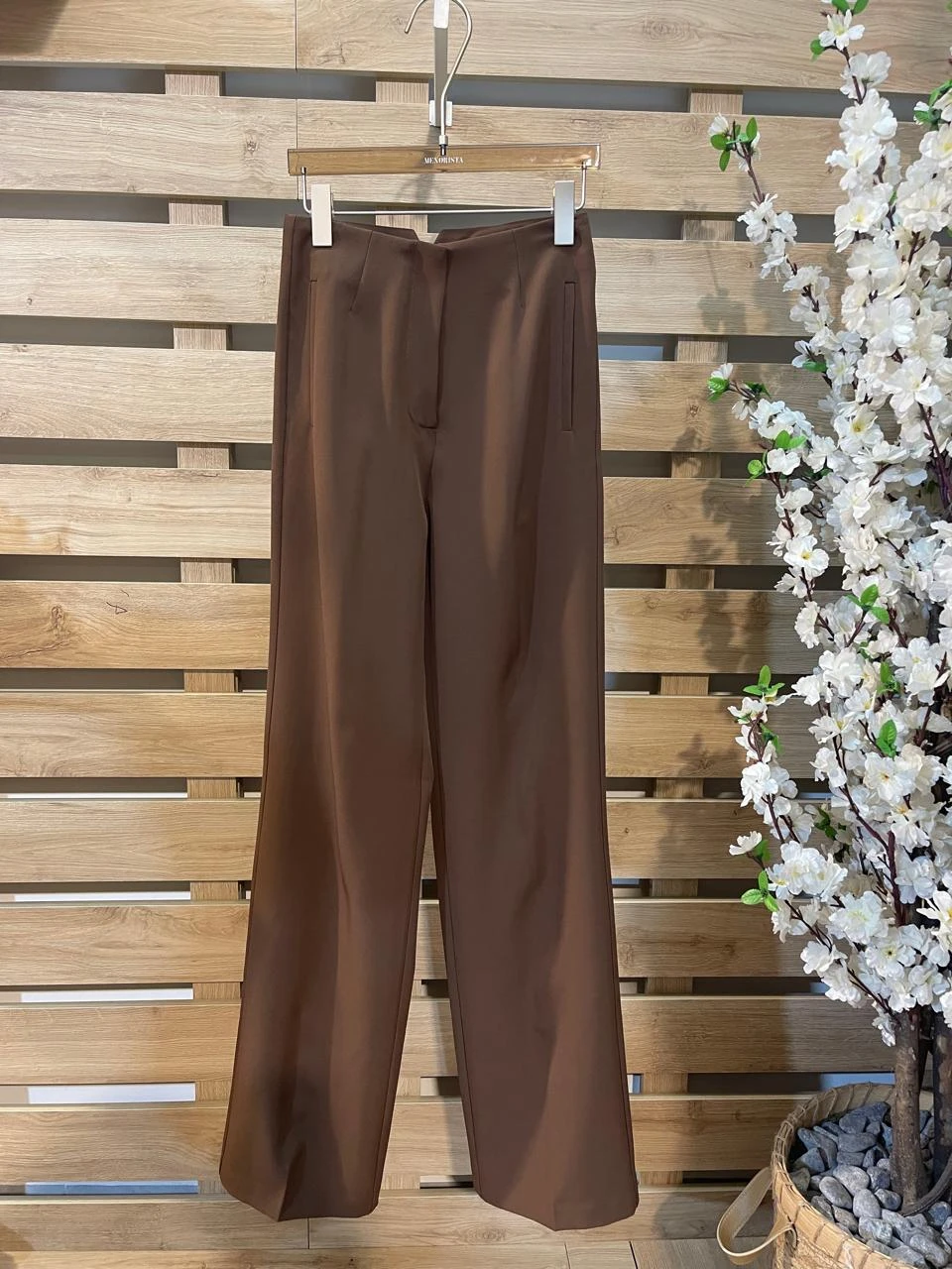 Plain Wide Leg Brown Pants