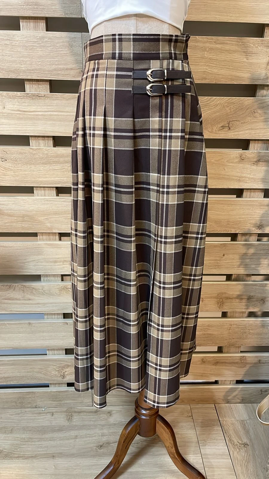 Side Belted Squared Camel Skirt