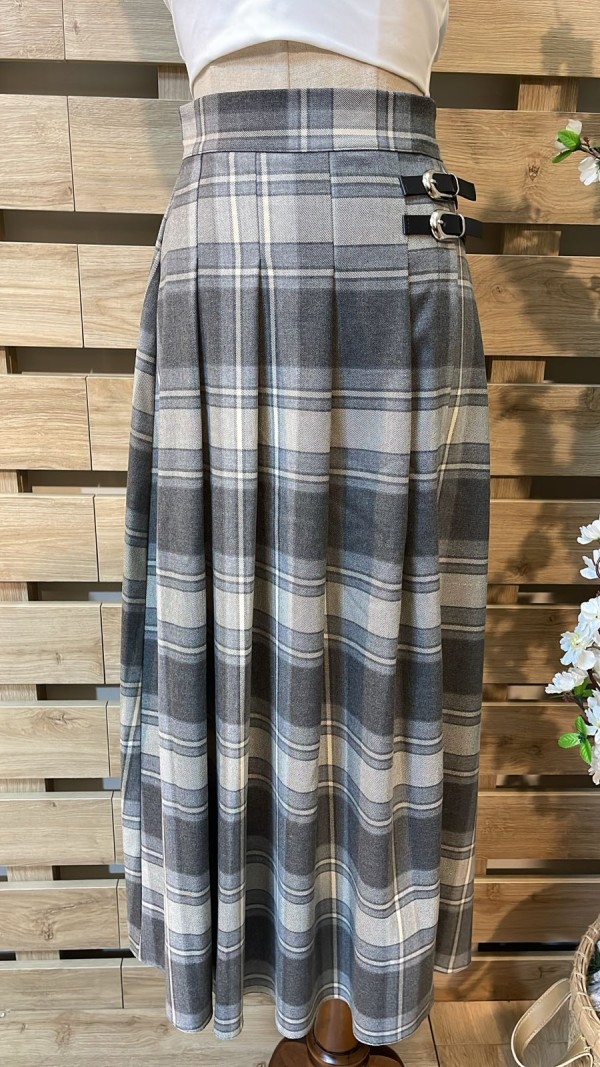 Side Belted Squared Grey Skirt
