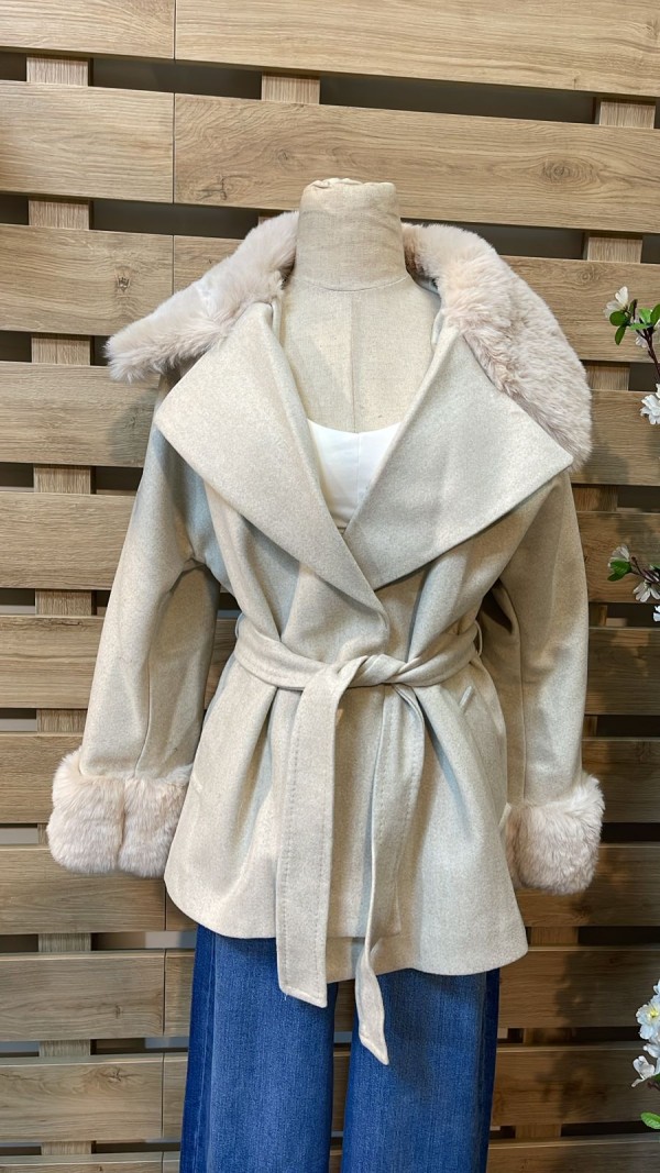 Fur Collar & Cuffs Beige Jacket