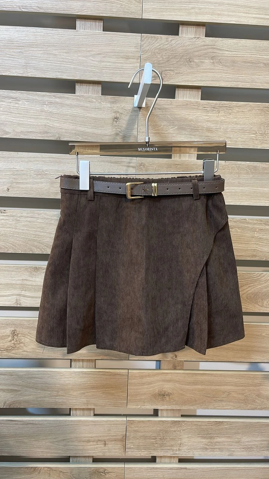 Side Pleated Belted Brown Skirt