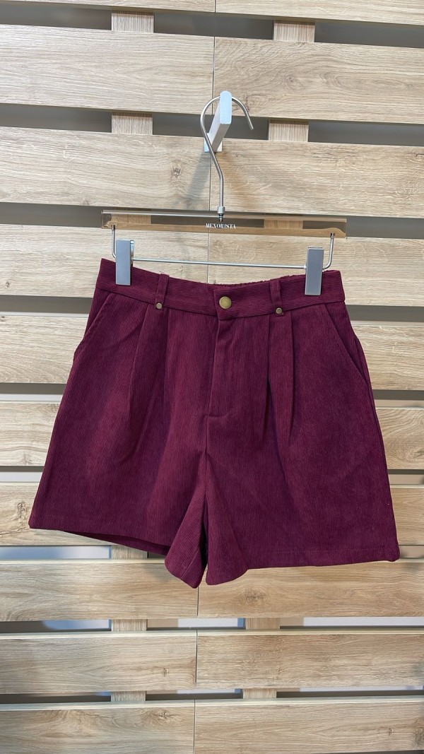 Ribbed Velvet Bordeaux Shorts