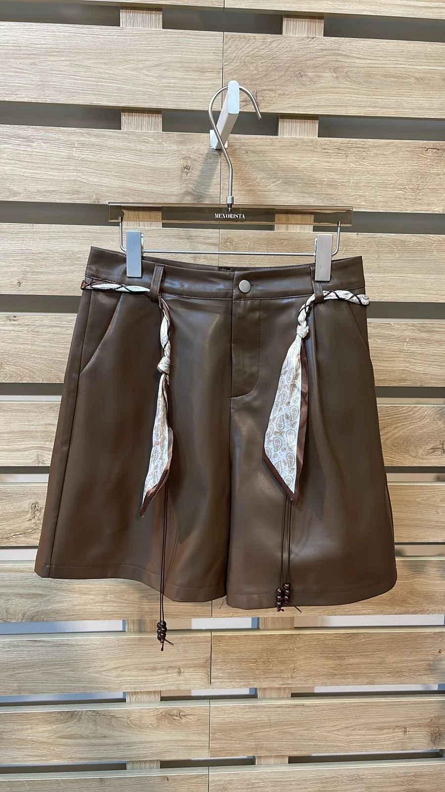 Scarf Belted Brown Shorts