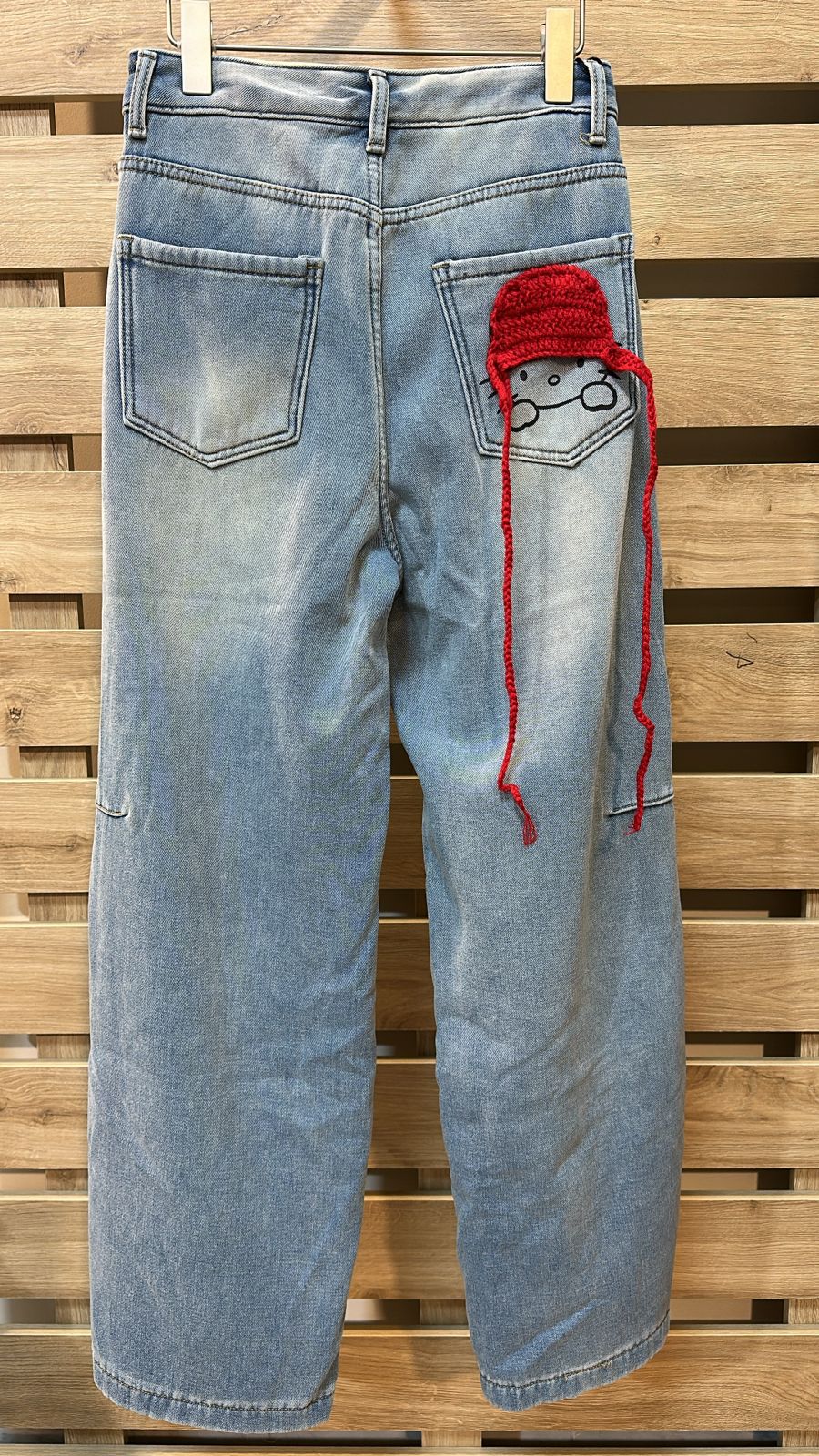 Red Back Designed Light Blue Jeans