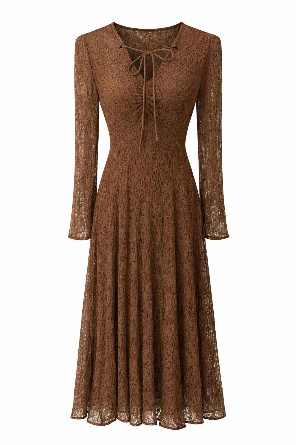 Long Sleeves Mesh Brown Dress