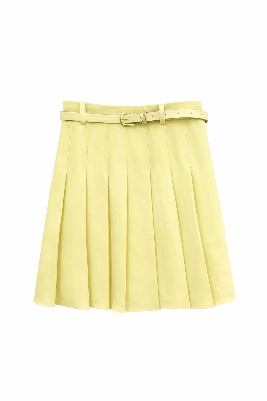 Belted Plisse Yellow Skirt