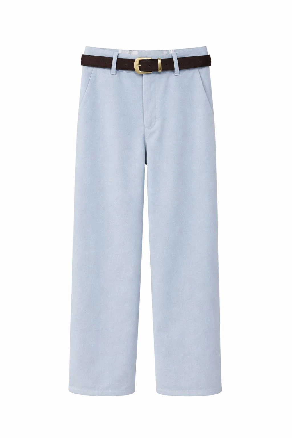 Belted Wide Faux Denim Blue Pants