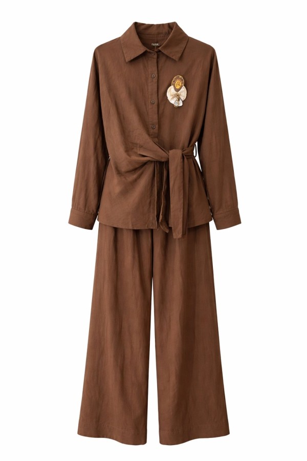 Side Belted Brown Set