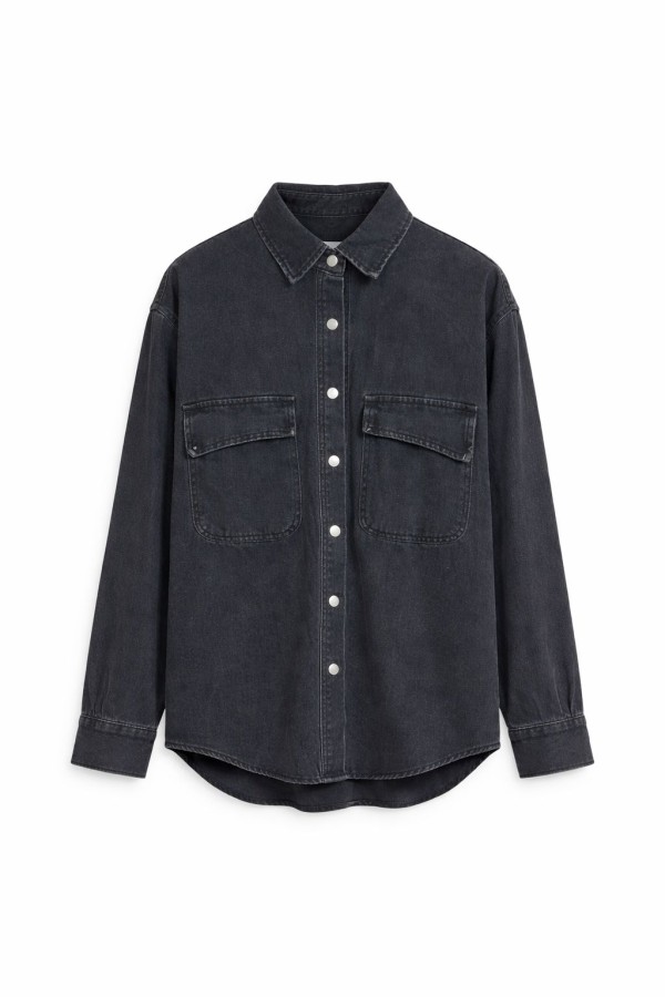 Huge Pockets Greyish Black Shirt