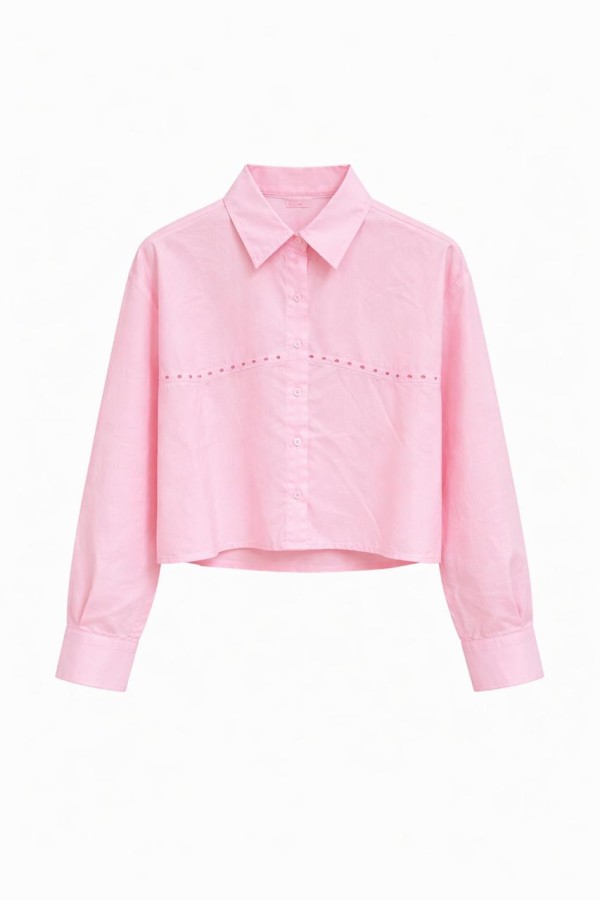 Rhinestones Detailed Pink Shirt