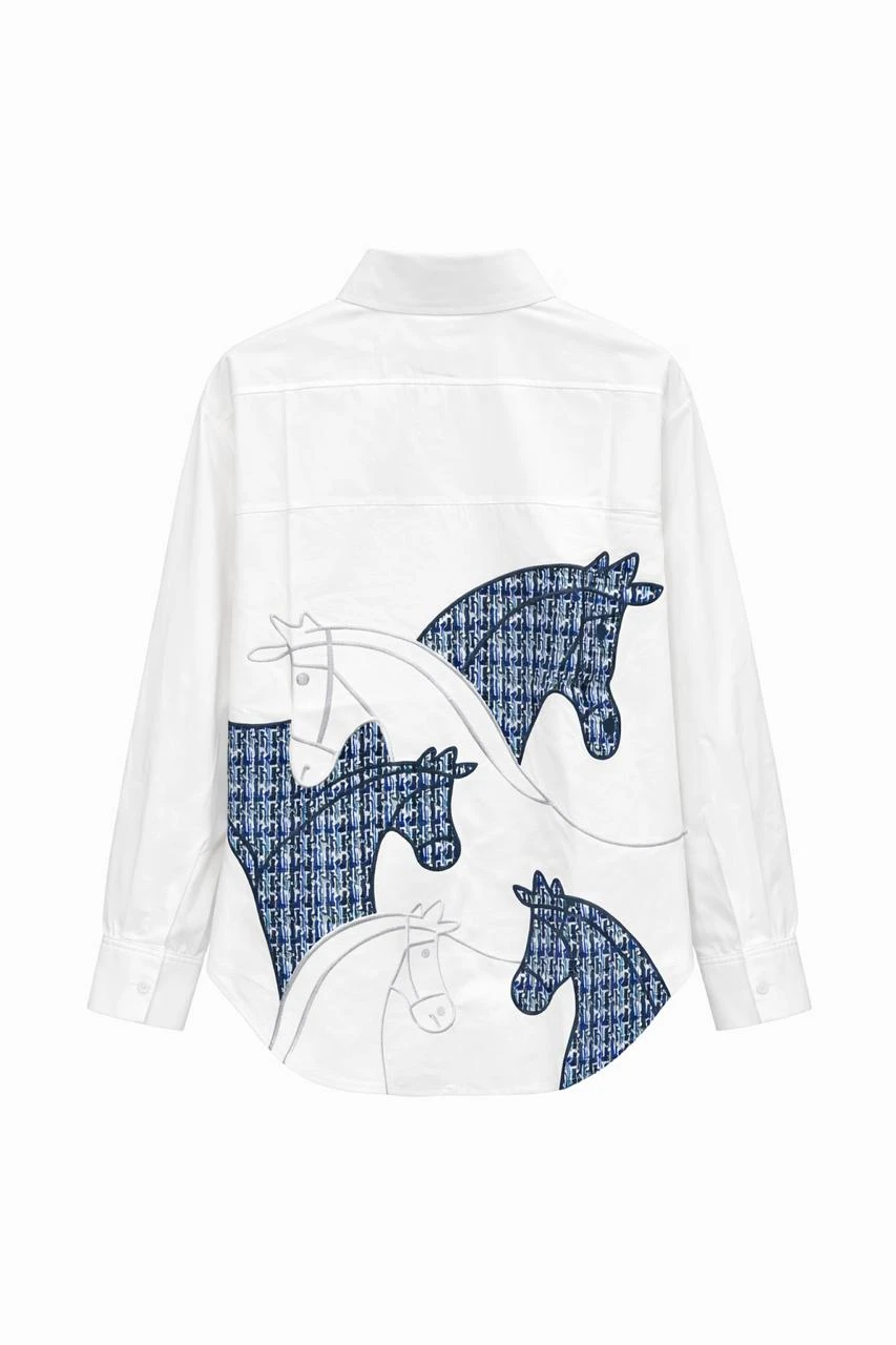 Back Horses Detailed White Shirt