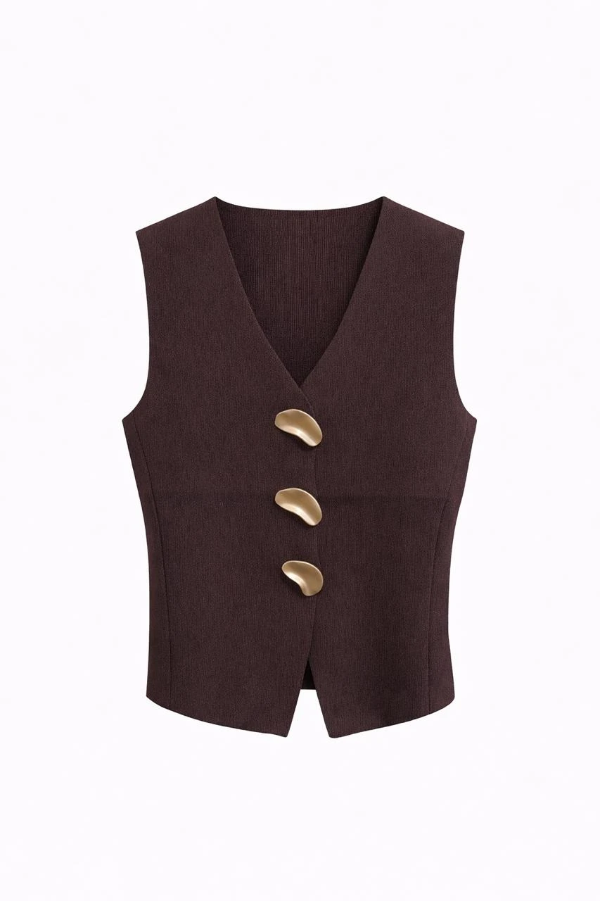 Triple Gold Buttoned Brown Vest
