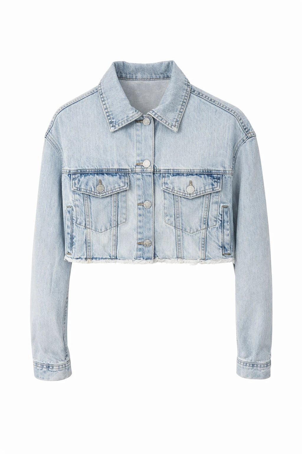 Frayed Cropped Light Blue Denim Jacket