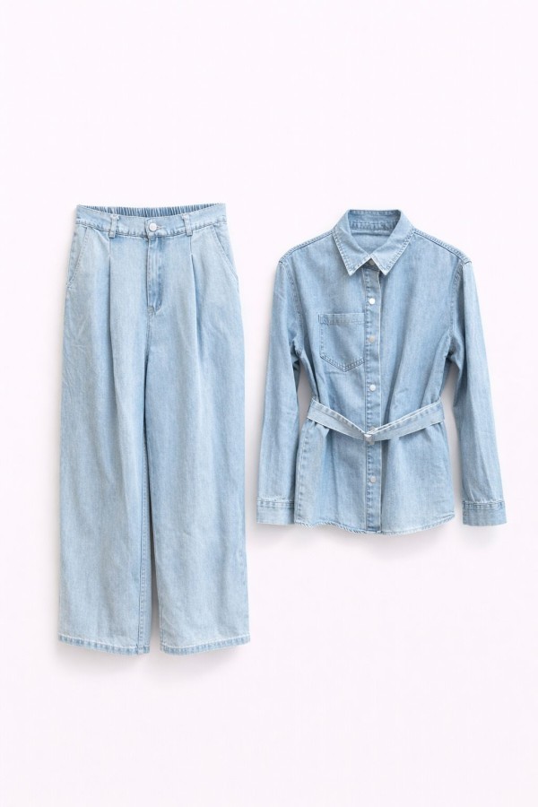 Belted Shirt Light Blue Set